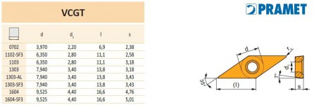 Indexable Cutting Inserts, PRAMET, VCGT 070204E-SF3:T6310
