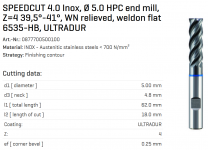 WHM end mill - SPEEDCUT 4.0 Inox, Z=4, ULTRADUR, MAYKESTAG, 8777005001 - 5x18/62