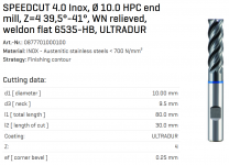 WHM end mill - SPEEDCUT 4.0 Inox, Z=4, ULTRADUR, MAYKESTAG, 8777010001 - 10x30/80
