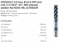 WHM end mill - SPEEDCUT 4.0 Inox, Z=4, ULTRADUR, MAYKESTAG, 8777012001 - 12x36/93