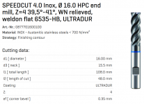 WHM end mill - SPEEDCUT 4.0 Inox, Z=4, ULTRADUR, MAYKESTAG, 8777016001 - 16x48/108