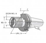Závitové pozdro, DIN 69871 A s kompenzací pro rychlovýměnné adaptéry, PRAMET, 69871.50A-QTCC.M5.M22