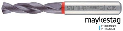 Vysoce výkonný vrták ze slinutého karbidu zvláště pro vrtání ocelí s vysokou pevností v tahu a kalení na 68 HRC.