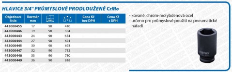 Průmyslové hlavice 3/4" prodloužená - NAREX