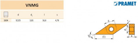 Indexable Cutting Inserts, PRAMET, VNMG 160408E-FM:3025